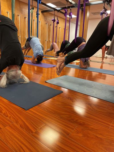 This training draws inspiration from Hatha, Yin and Vinyasa yoga styles. It will guide you through a safe practice with emphasis on alignment, strength and flexibility. This training includes 25 teaching units of 45 minutes and is designed to equip you with the foundation of knowledge, techniques and skills in aerial yoga. There will be anatomy lessons, homework and, upon completion, a certification.